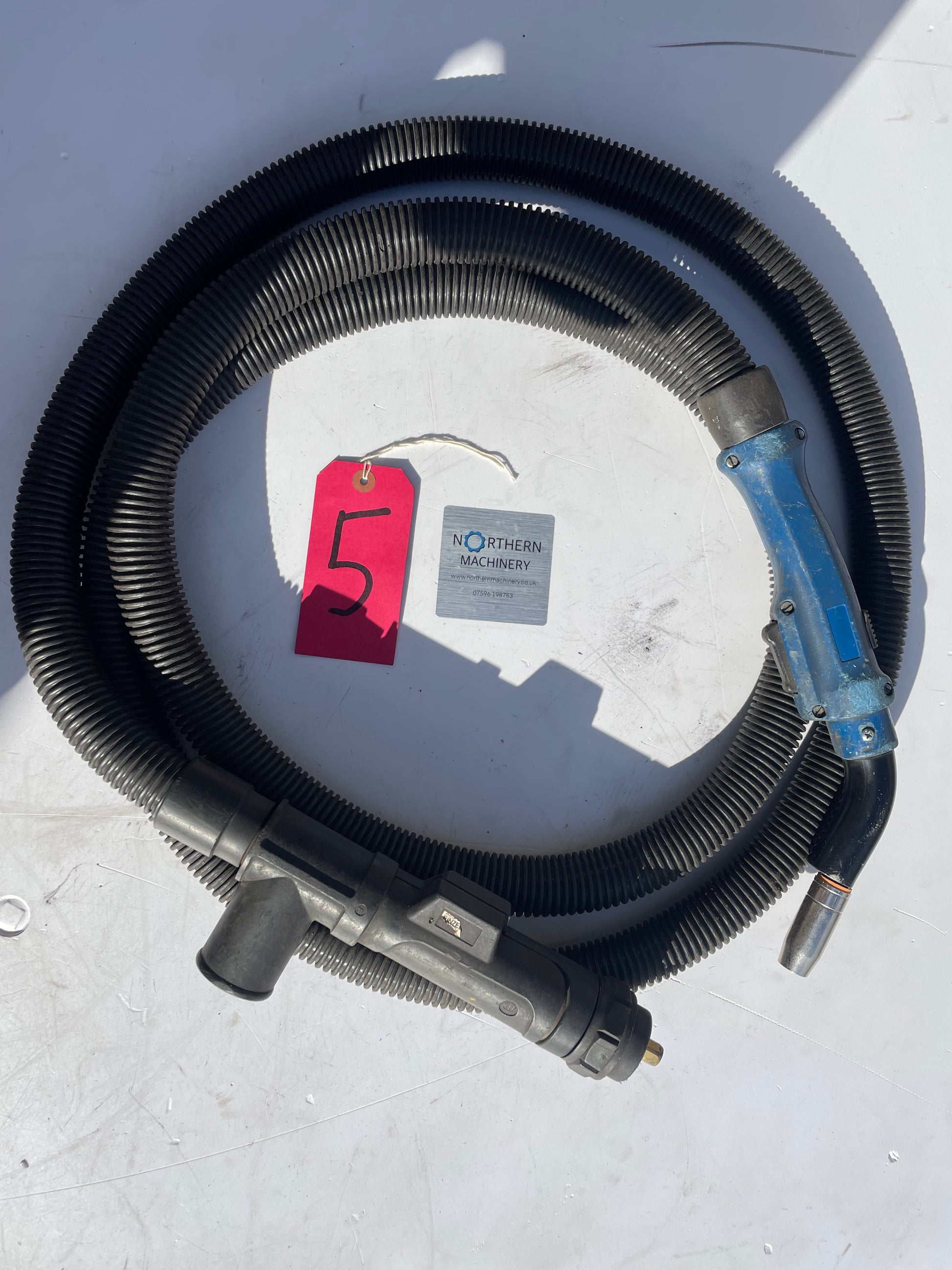 4 meter MB5 euro fitting mig torch in untested condition hence spare repair. It is a good clean torch, everything is there, new tip and shroud fitted.