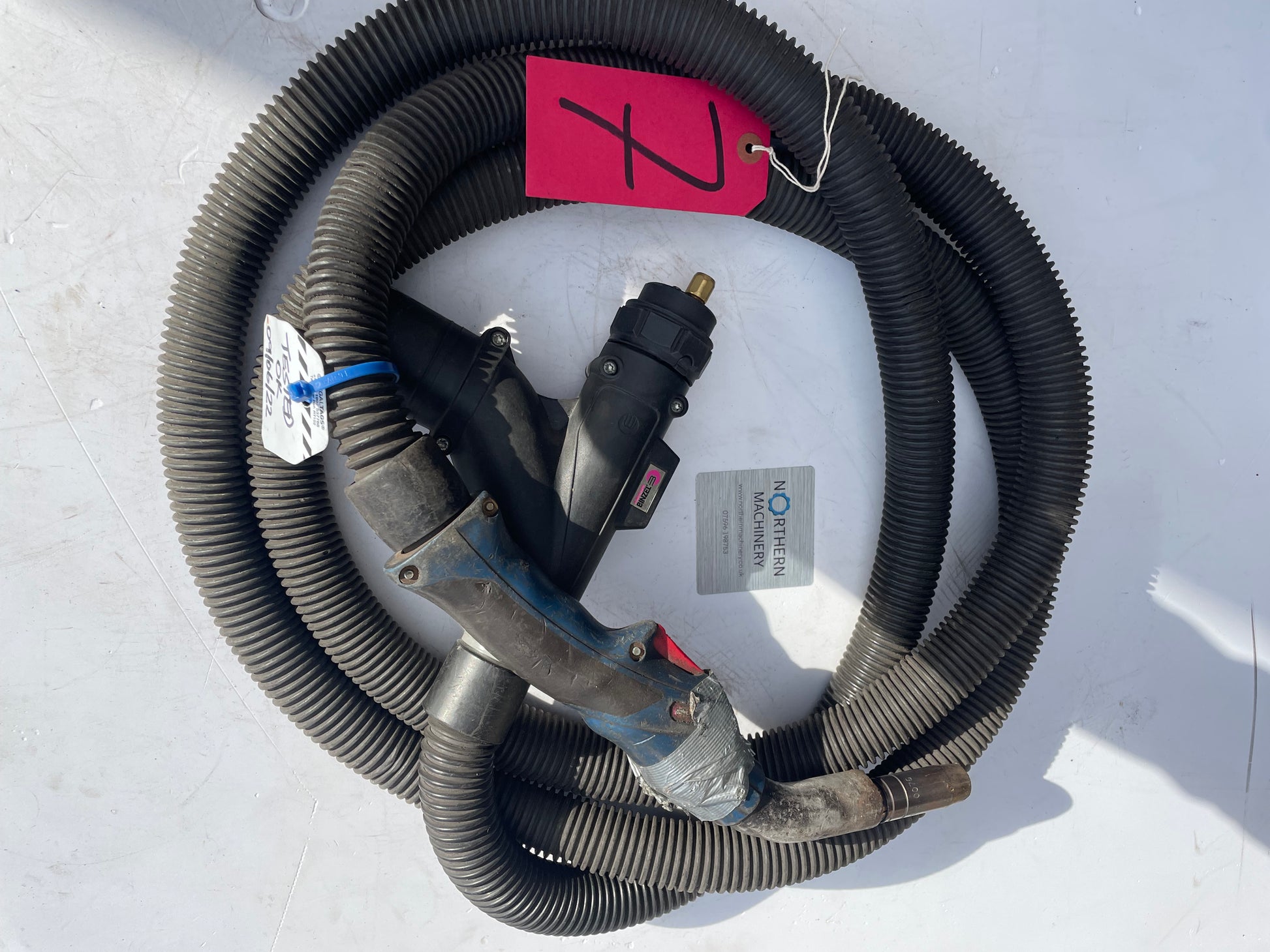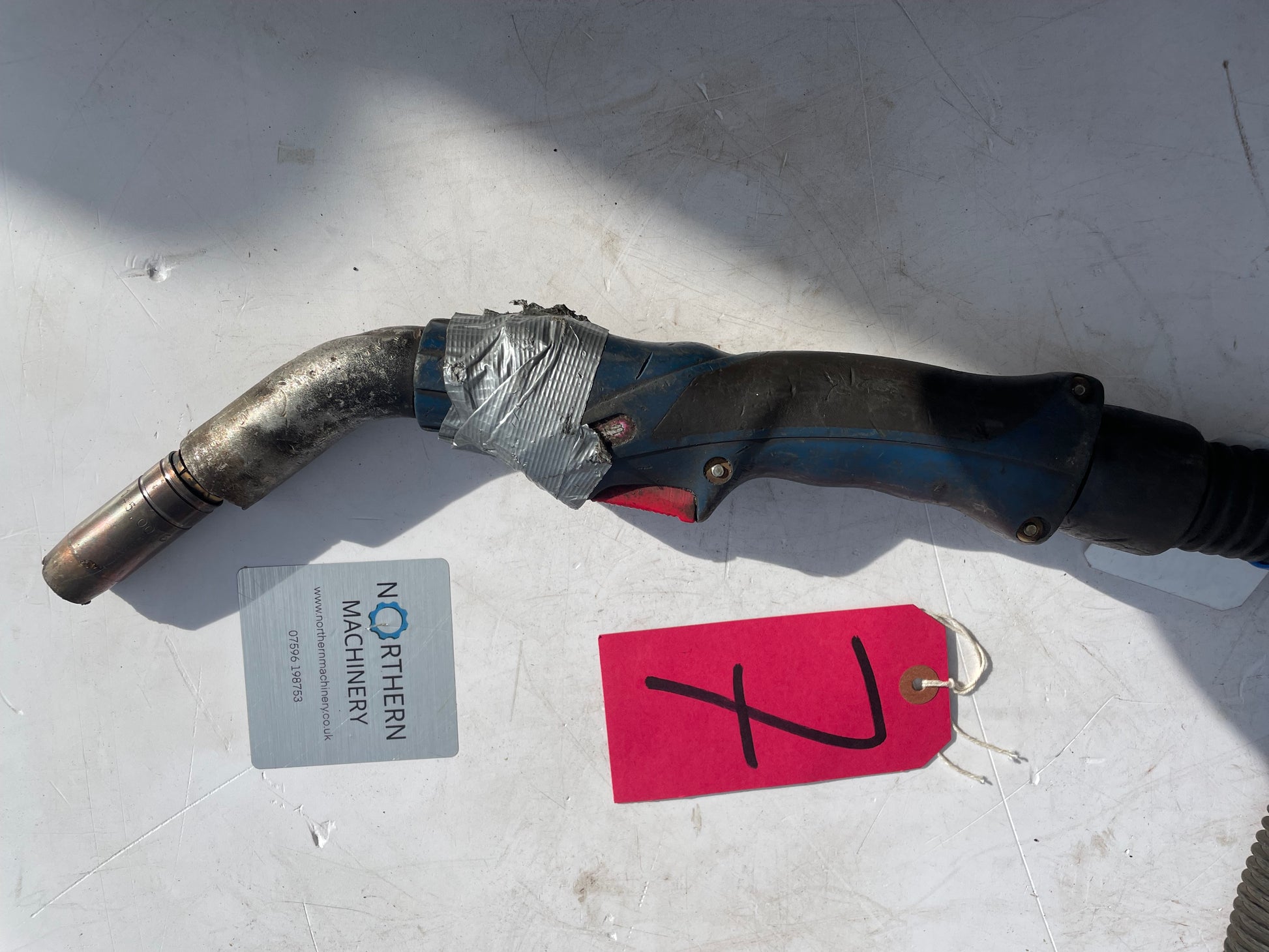 4 meter MB5 euro fitting mig torch in untested condition hence spare repair. It is a good clean torch, everything is there, new tip and shroud fitted.