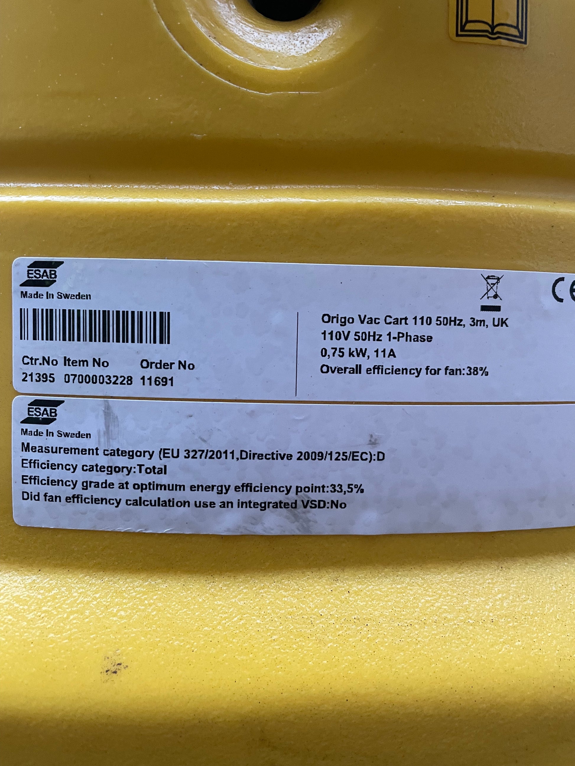ESAB OrigoVac 110v Mobile filter cart welding Fume Extractor , TESTED TILL 08