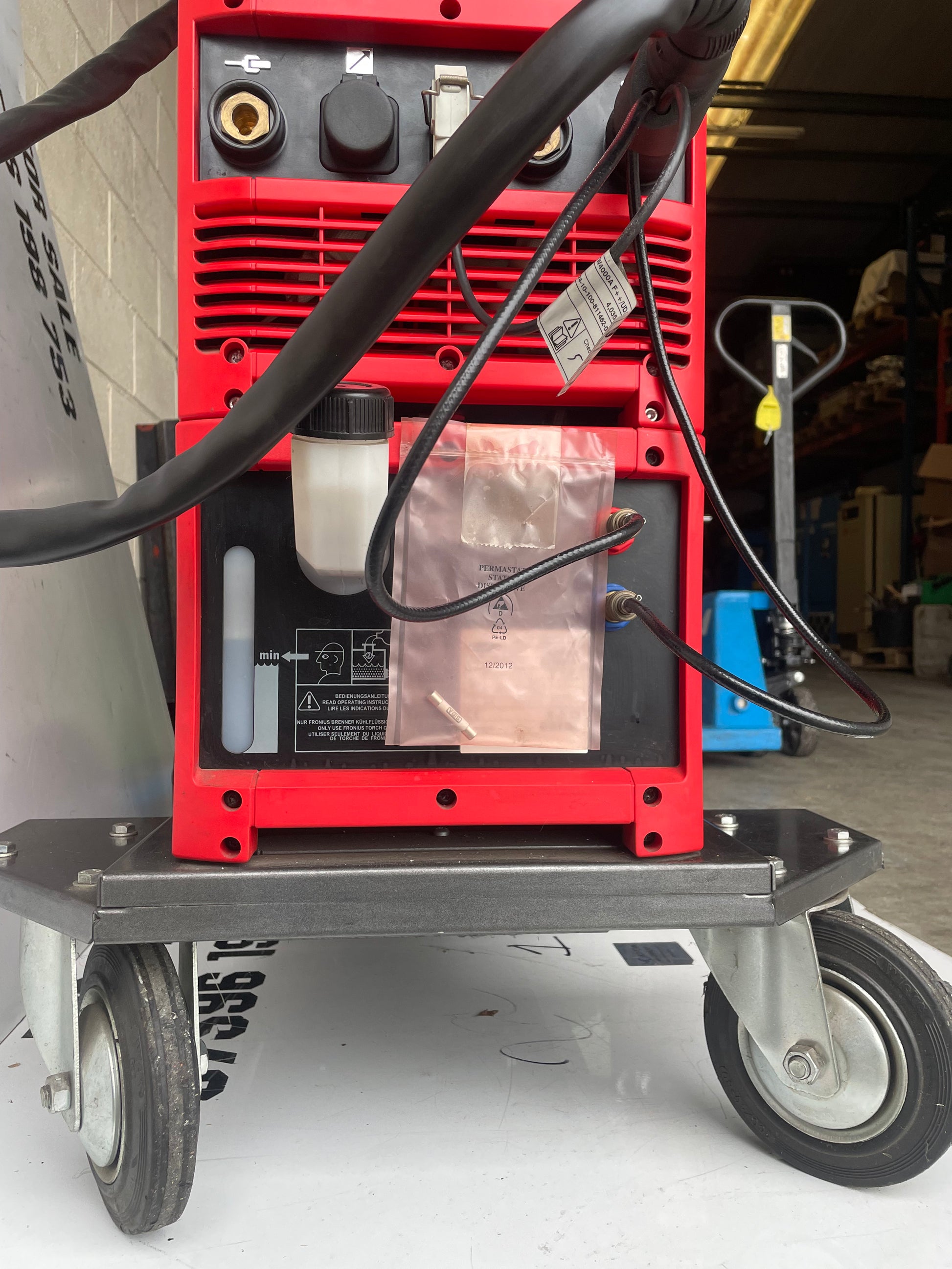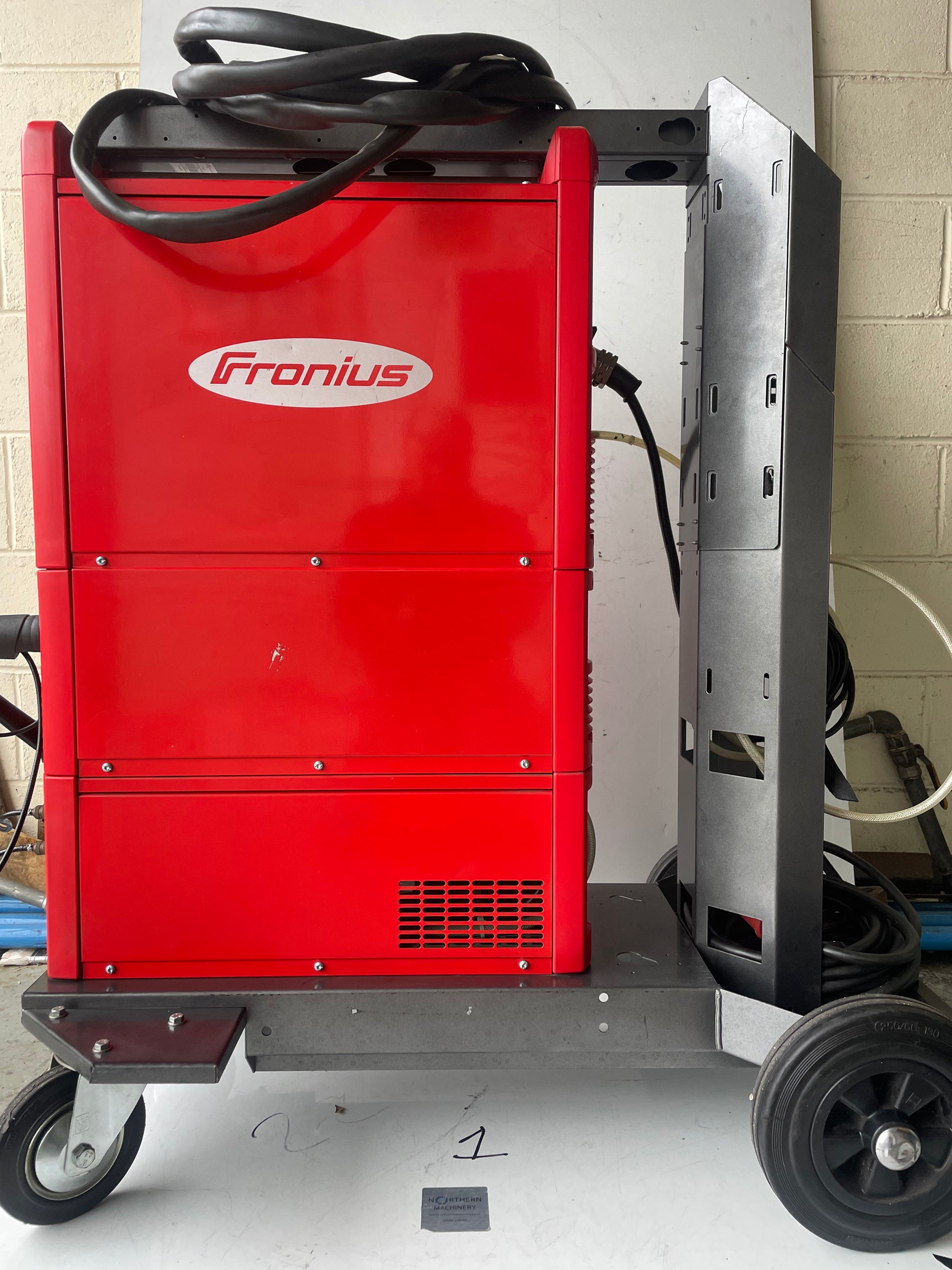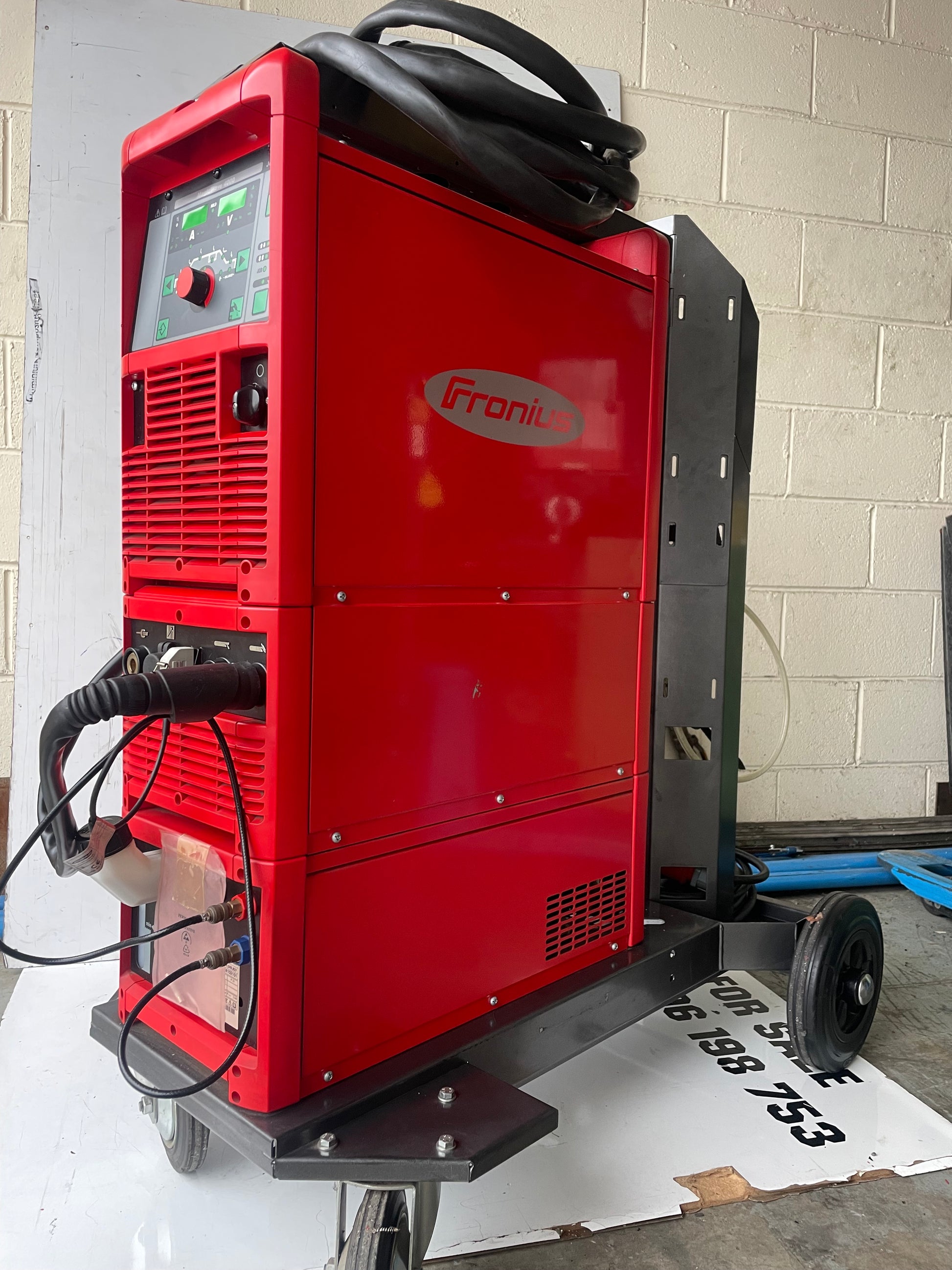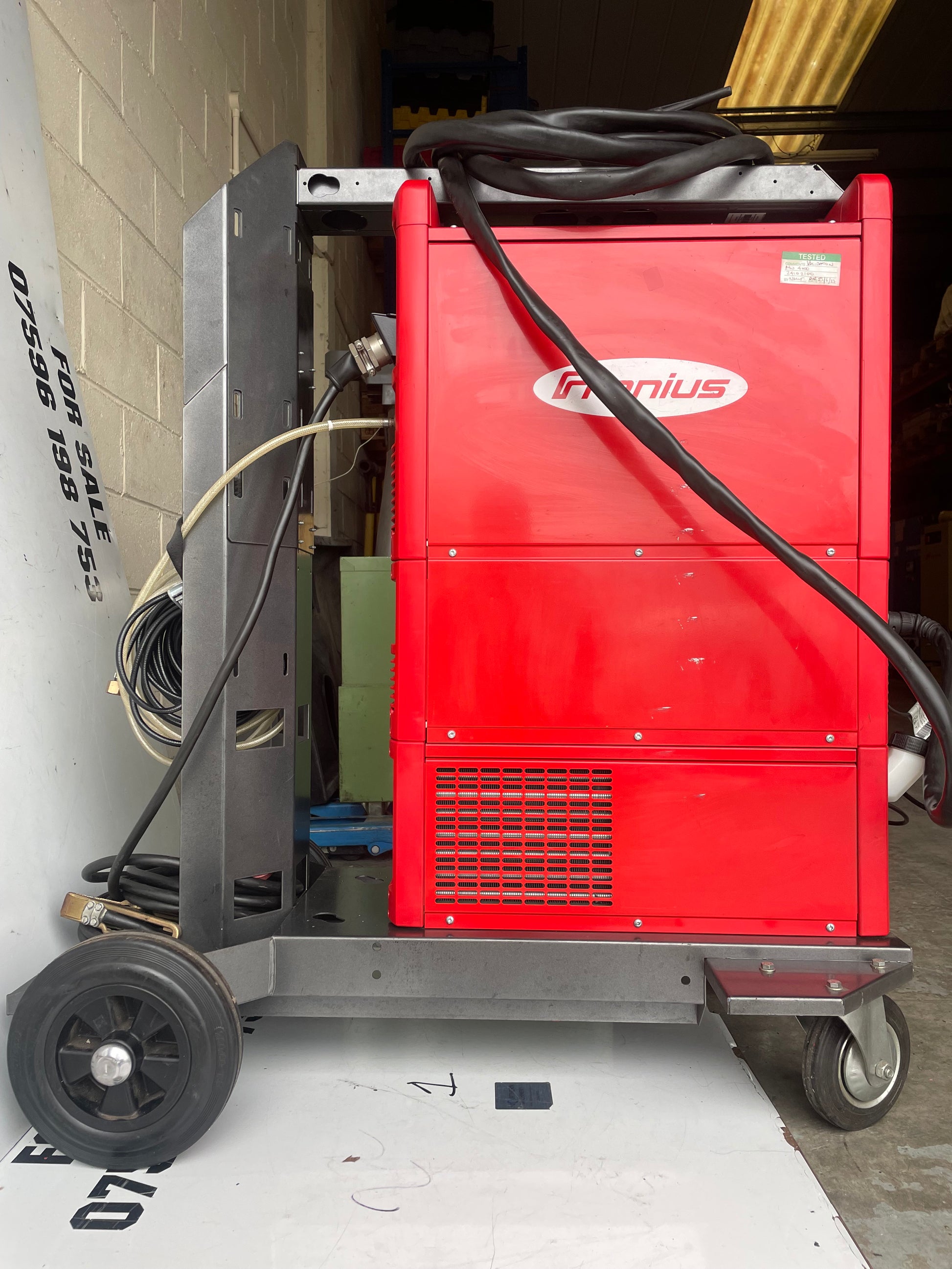 Water-cooled, ensuring that it stays cool even during long welding sessions. This welder is in great condition as can be seen in the pictures, calibration has not long expired, comes on a heavy fronius Trolley that can support full size bottles.