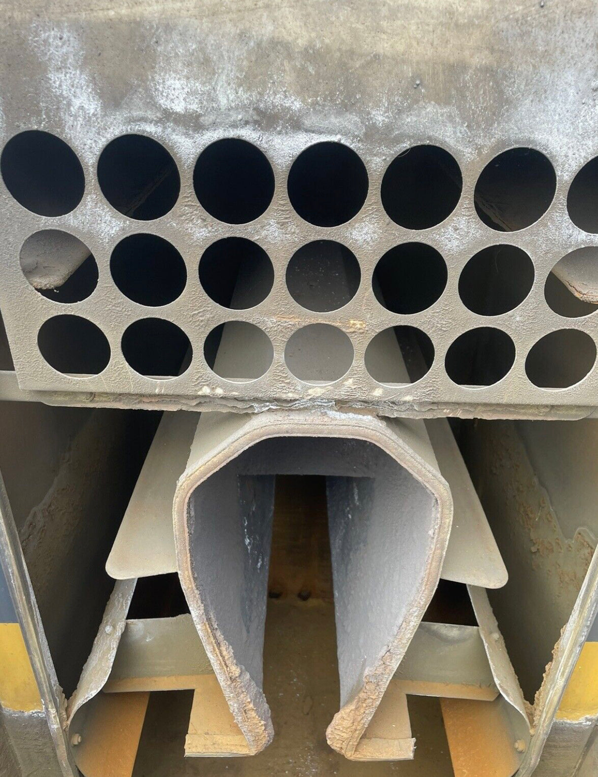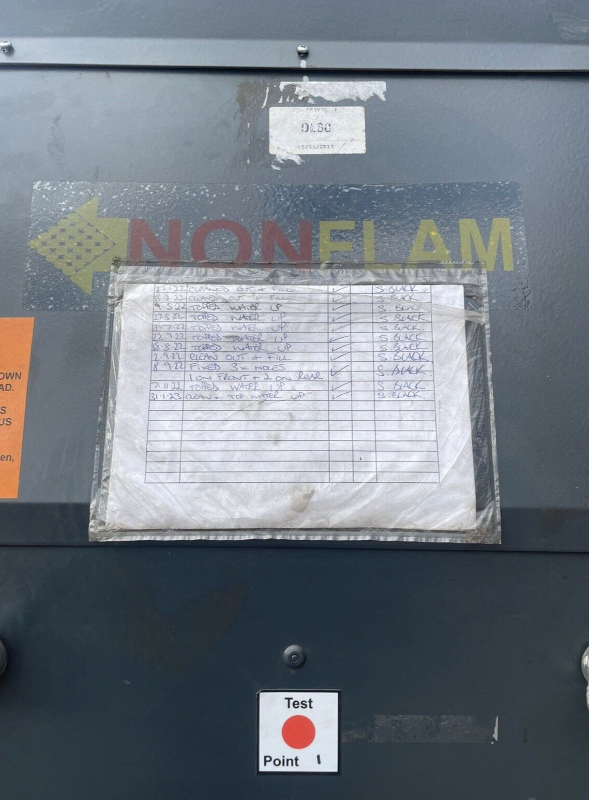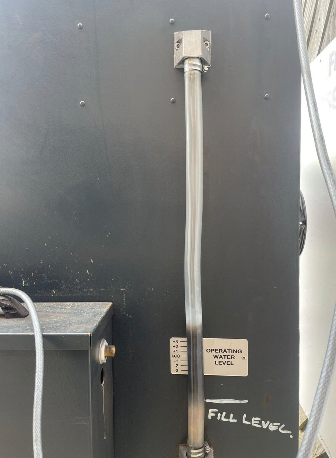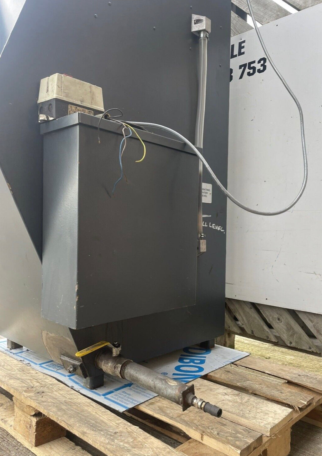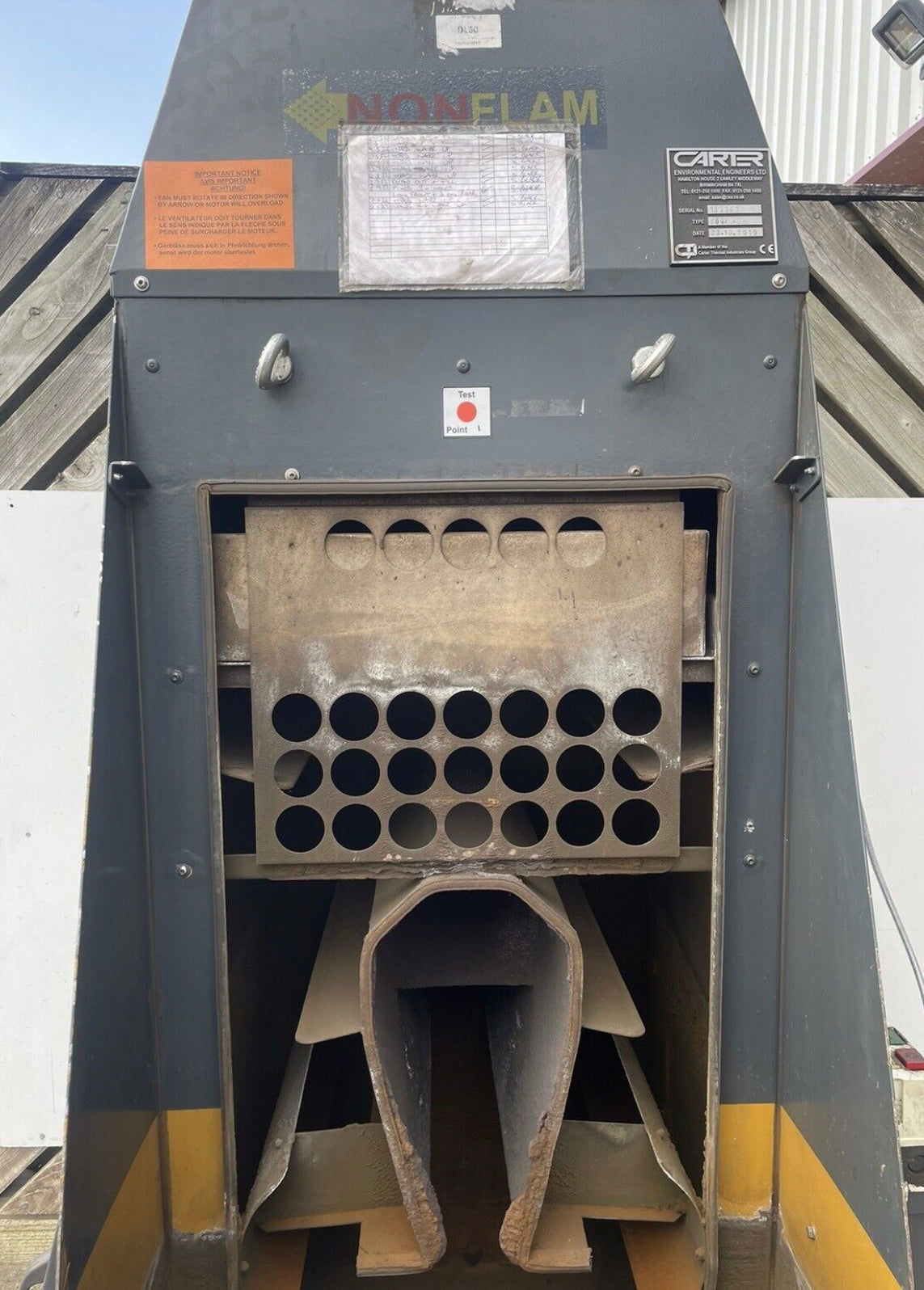 The carter system is a water filter unit, this means its an anti fire system catching any combustible metals, catching fire as well as keeping air born materials at bay. It has a drain system on the side where water can be changed and a handy level pipe so you can top up as needed, it is in good working order with 3 phase power supply.