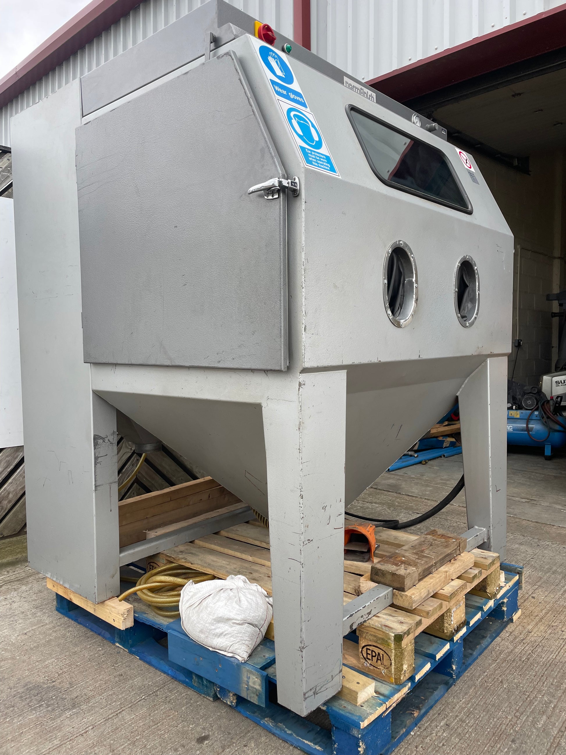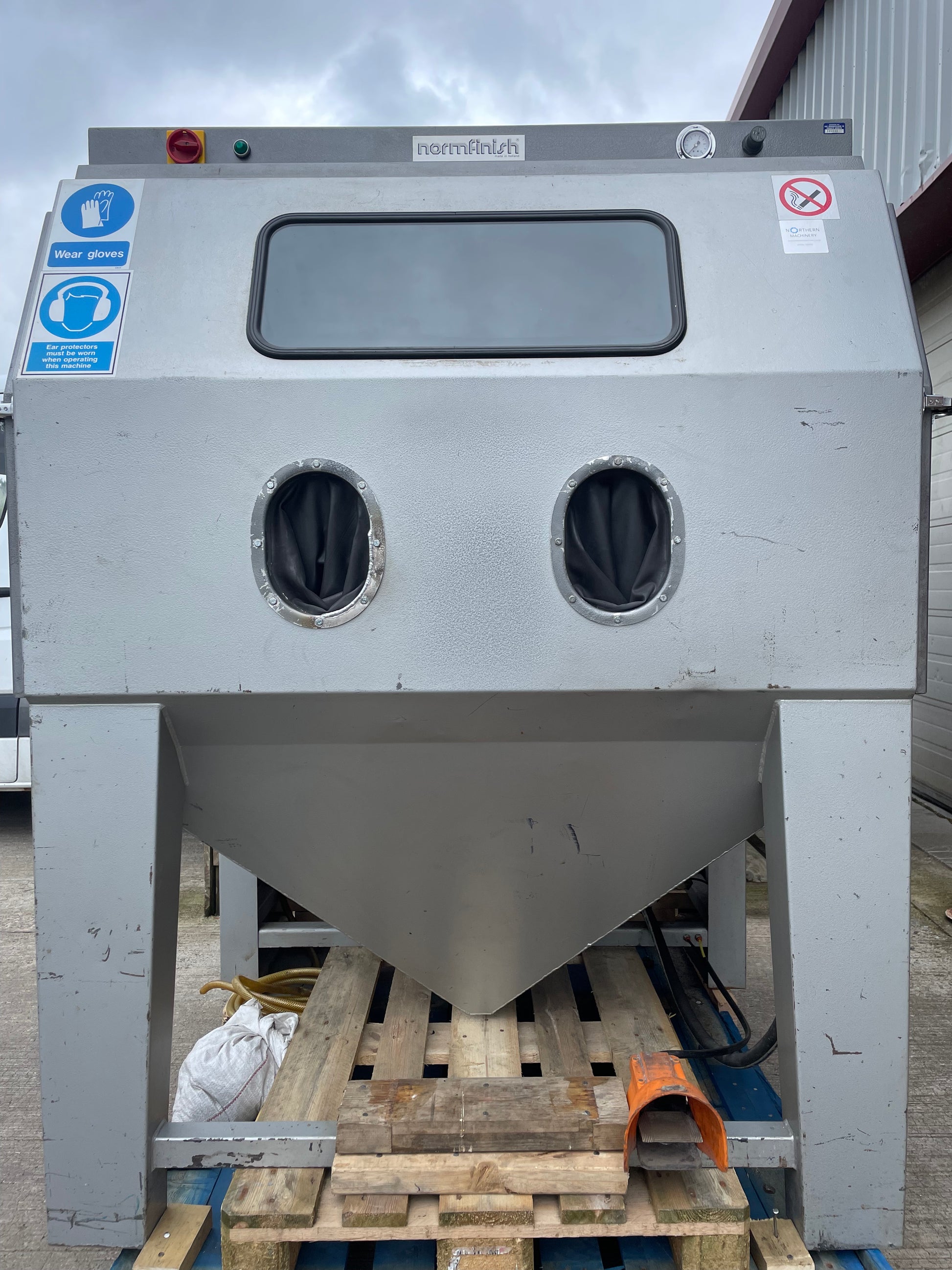 Industrial Nornfinish Blast Cabinet with integrated blast chamber, silo and dust extractor.