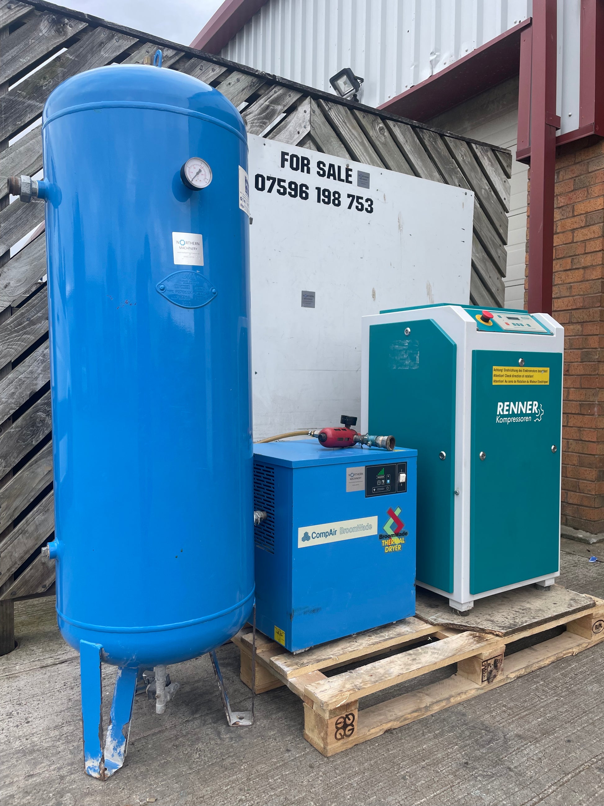Renner RS PRO Screw compressor complete with dryer, reg / filter and 270L air receiver.