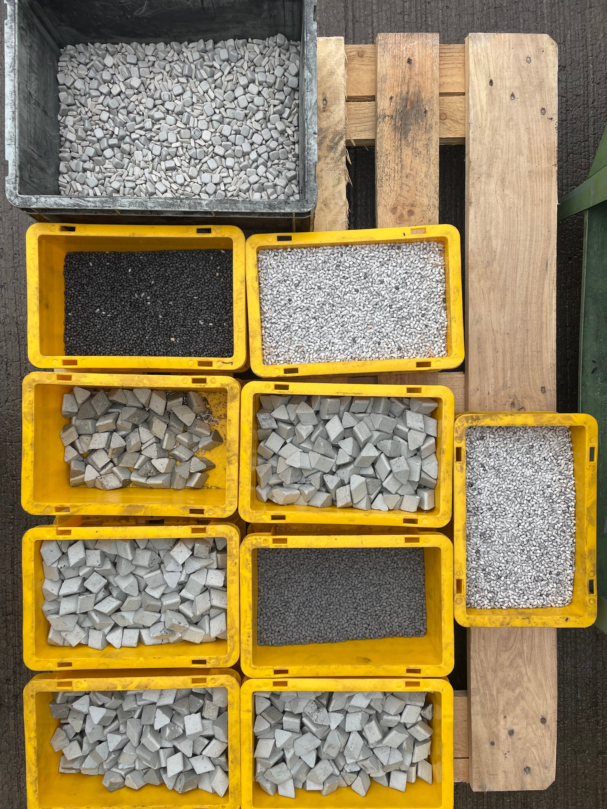 Sharmic engineering ltd parts cleaner / rumbler with large selection of ceramic stones.